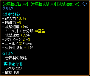 ・速度16%光攻撃Lv3火抵抗14%パーリンLX